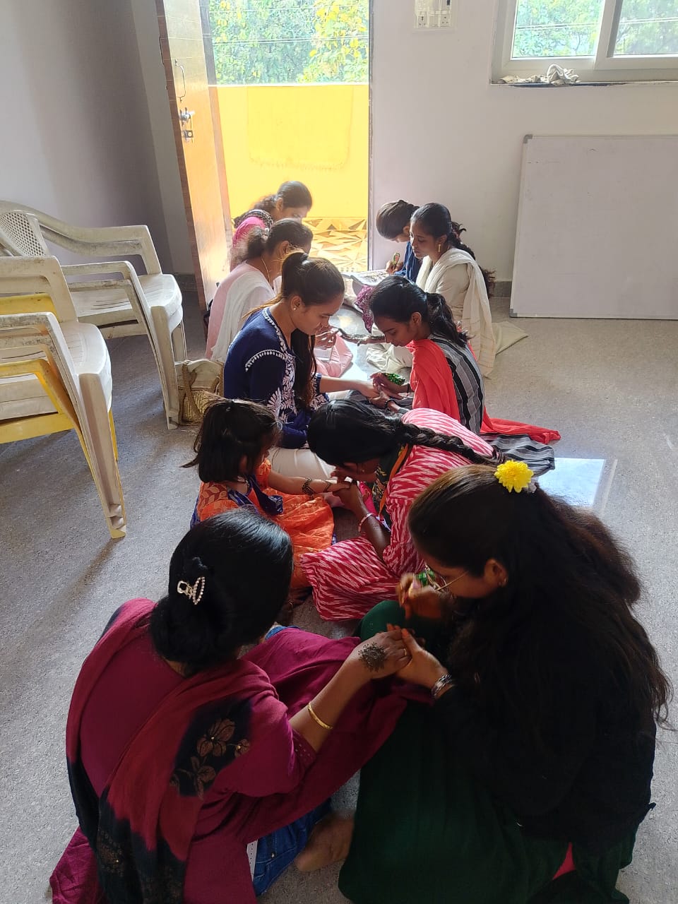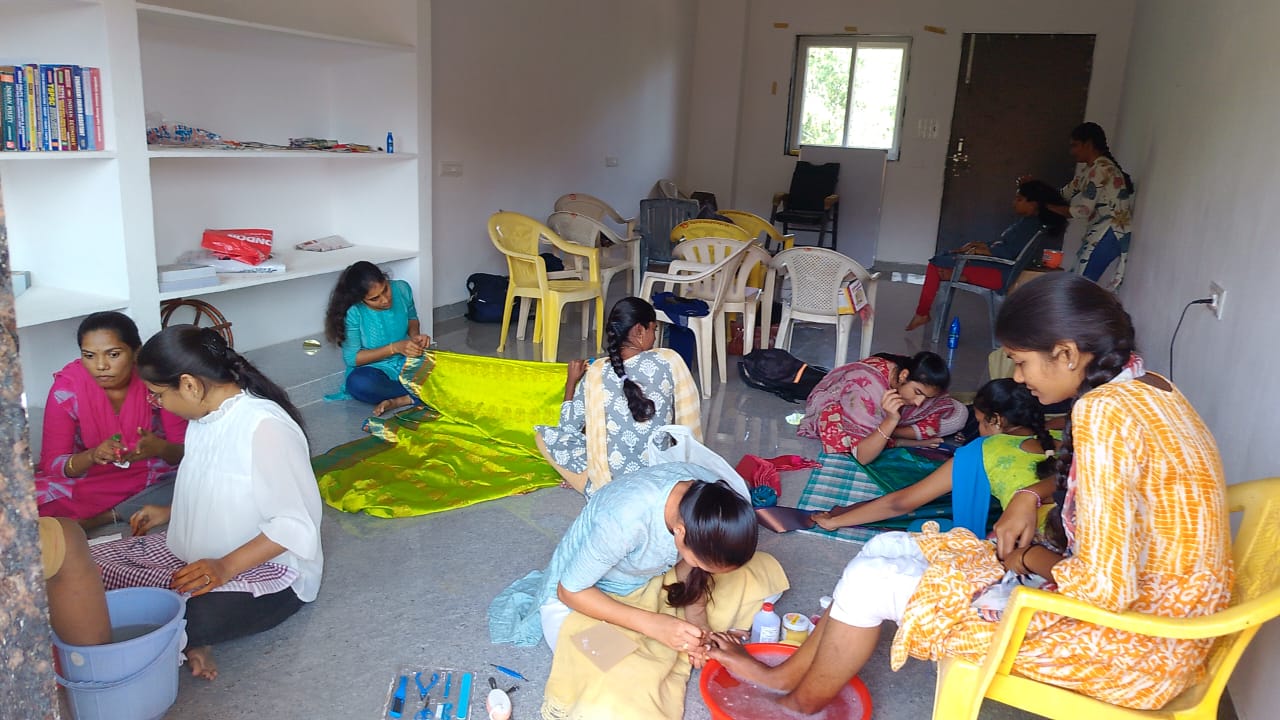 Girls gaining beautician skills at the Skill Development Center, Mancherial.Â